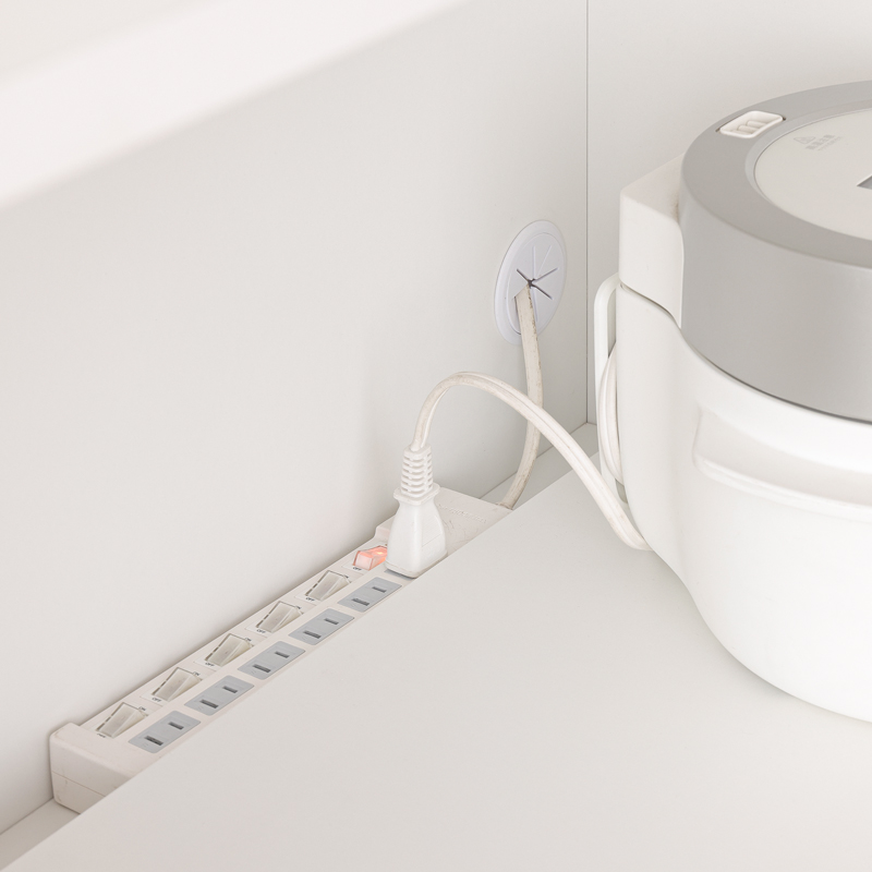 上段に、スライドして引き出せる棚を取り入れたスライド棚付ドロワー。 炊飯ジャーやケトルなどを置いて、使うときだけさっと手前に動かせる便利な収納です。 ウレタン塗装で水にも強いため、天面でちょっとした調理をすることも可能。