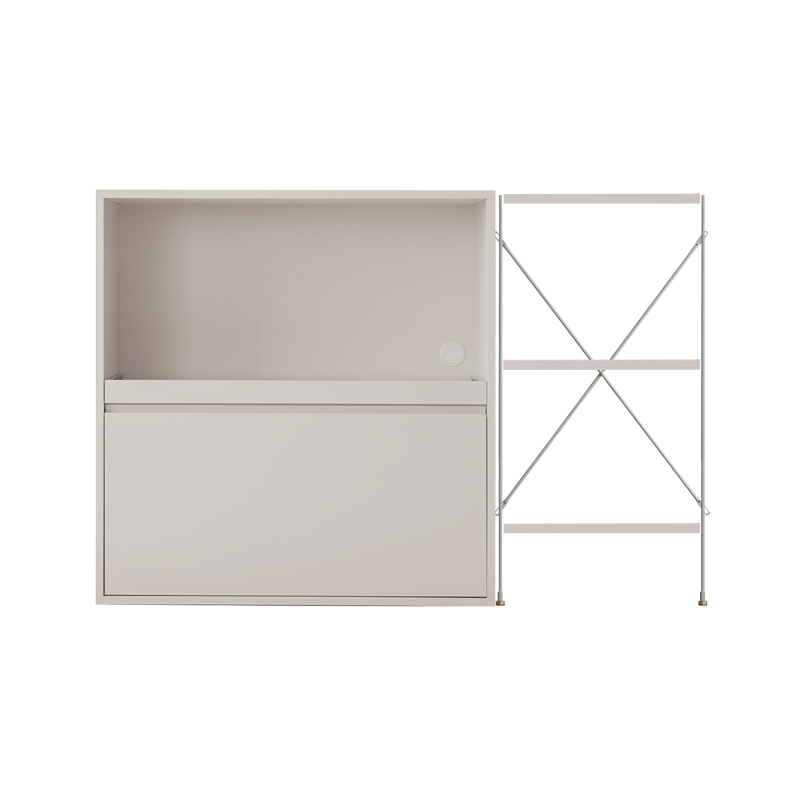 壁面を覆う大型のブックシェルフから、コンパクトなシェルフやTVボードまで、使う場所に合わせた様々な組み合わせが可能です。