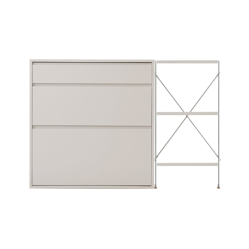 奥行きが43cmで収納力の高い通常タイプと、奥行きが23cmで狭い場所にもフィットする薄型タイプ。
