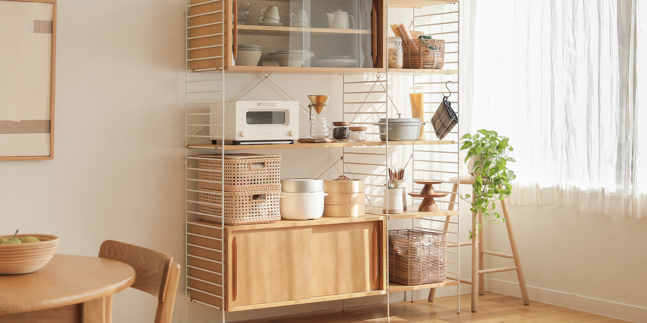 キッチンでは、カトラリーからお皿や鍋までしまえるキッチン収納としてお使いいただけます。