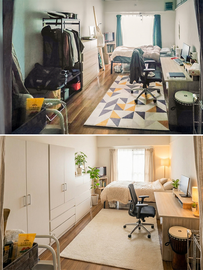 壁に自然に馴染むカラーなので、大型の収納を置いても、