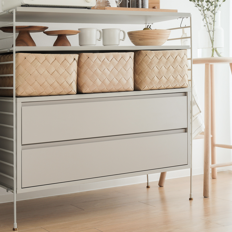 開口部が大きく出し入れしやすいドロワー。衣類や食器などを片付けるのに向いています。