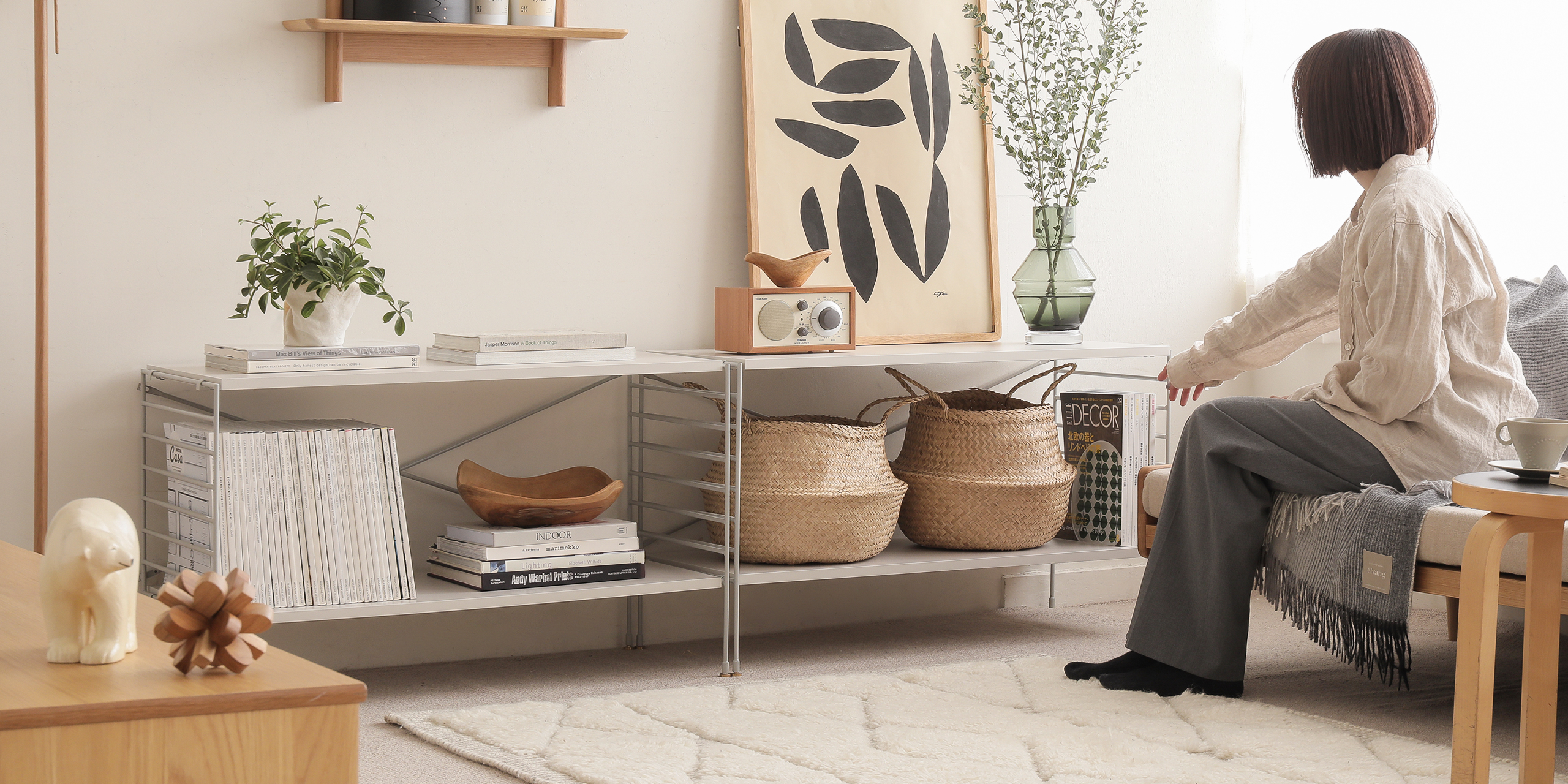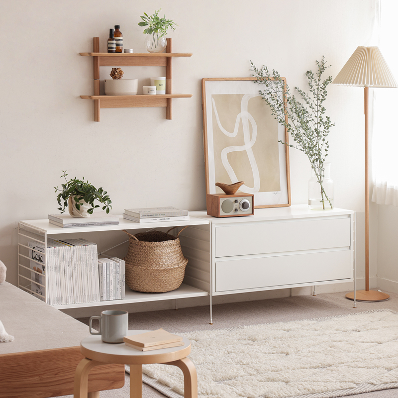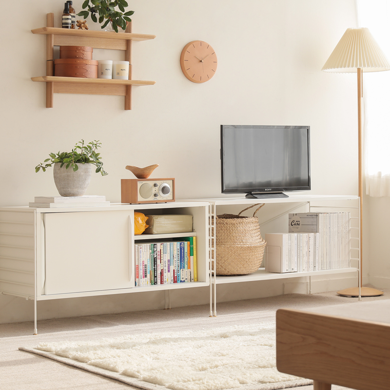壁面を覆う大型のブックシェルフから、コンパクトなシェルフやTVボードまで、使う場所に合わせた様々な組み合わせが可能です。