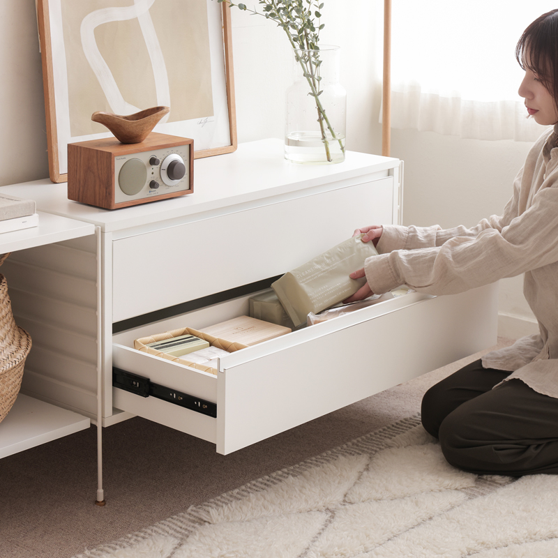 開口部が大きく出し入れしやすいドロワー。衣類や食器などを片付けるのに向いています。