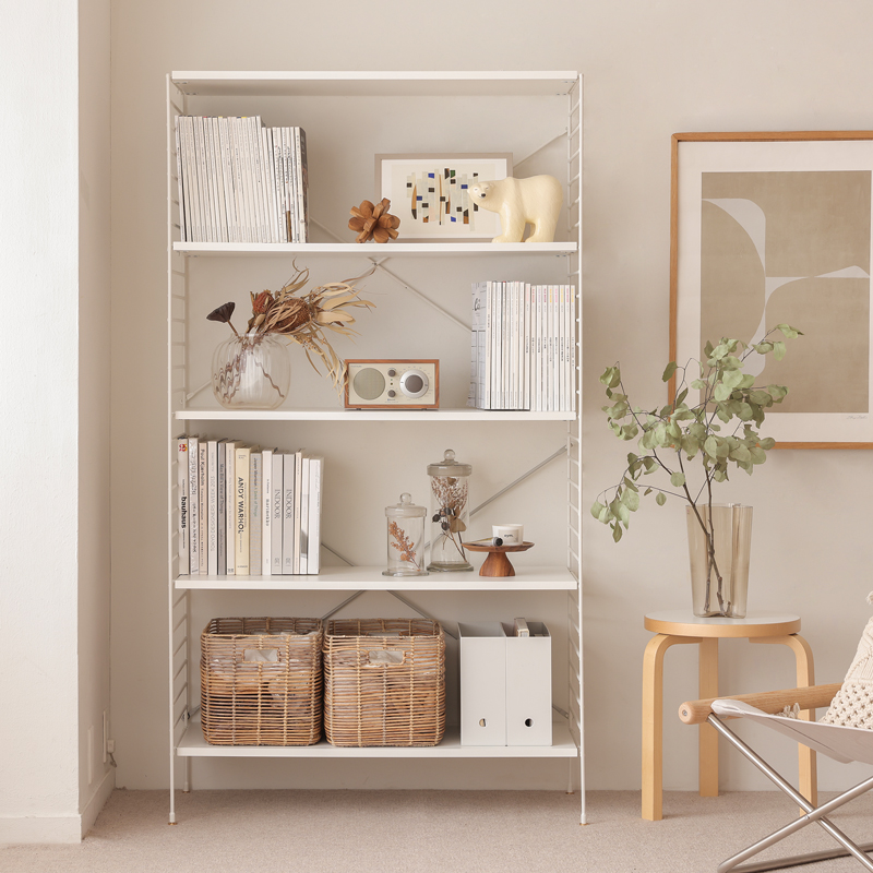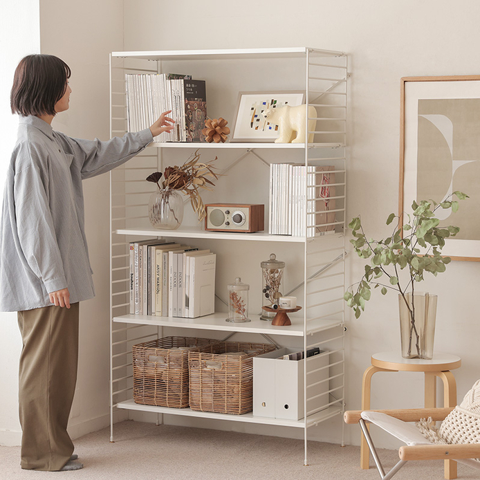 極限まで細くしたアイアンを採用しており、圧迫感を感じさせないフレームが、シャープでスタイリッシュなユニットシェルフを作り上げてくれます。