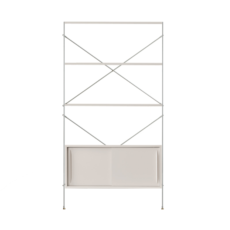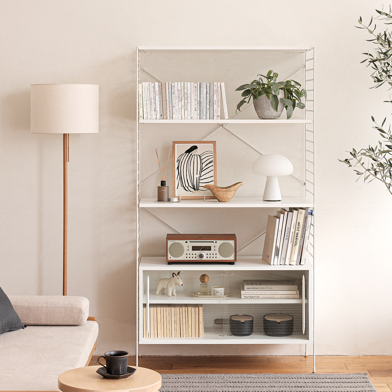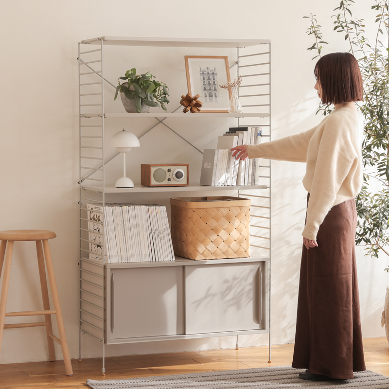 壁面を覆う大型のブックシェルフから、コンパクトなシェルフやTVボードまで、使う場所に合わせた様々な組み合わせが可能です。