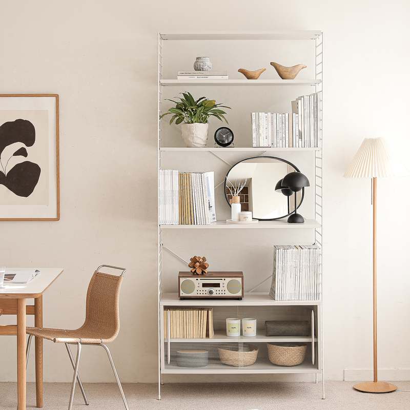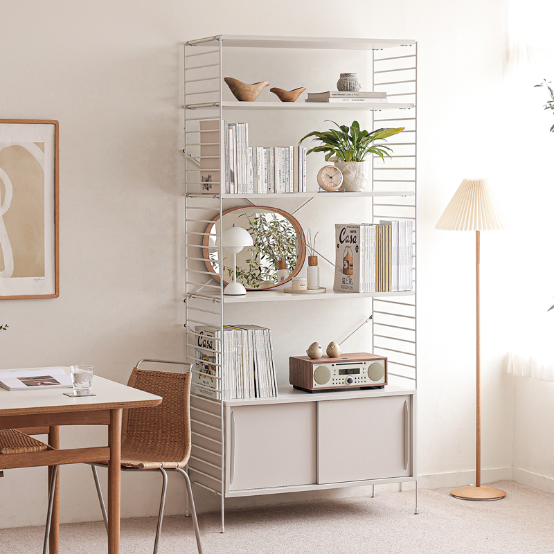壁面を覆う大型のブックシェルフから、コンパクトなシェルフやTVボードまで、使う場所に合わせた様々な組み合わせが可能です。