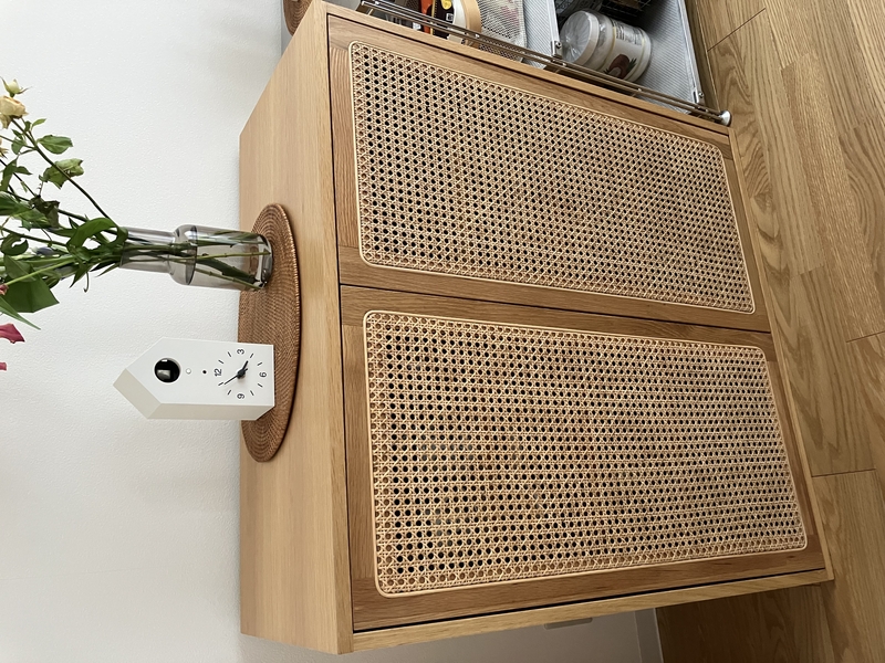 キッチンでの不を起点として作り上げたラタンキャビネットですが、キッチン以外の場所でも使いたくなるデザインに仕上がりました。