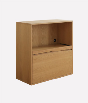 上段に浅めの引き出し、下段に大きな扉収納を配したドロワー付キャビネット。