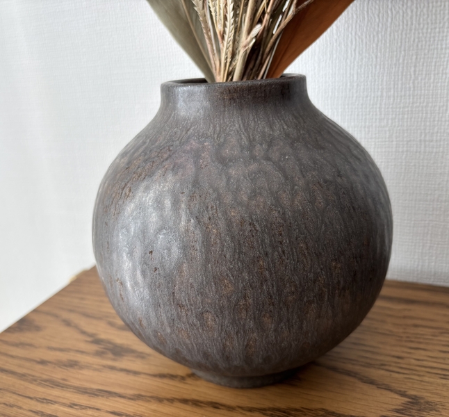 趣のある佇まいは、何も入れずにそのまま飾るだけで、まるでオブジェのように絵になります。お花やグリーンを飾るのはもちろん、単体でディスプレイアイテムとしても使えるのが、このフラワーベースの大きな魅力です。