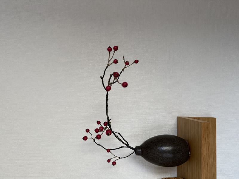 実のある枝を生けて、スツールやミニテーブルの上にポンと置いておくだけでも、立派なディスプレイになります。