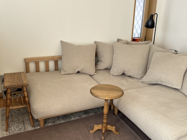 置いたら圧迫感がでるのでは?家が狭く見えるのでは?手持ちの家具と木の色味は合うのか?など、大型家具だからこそ気になる点はあったのですが、実際届くと全て問題なかったです!