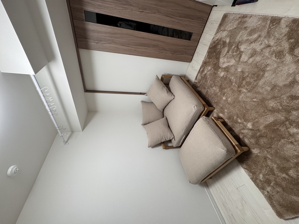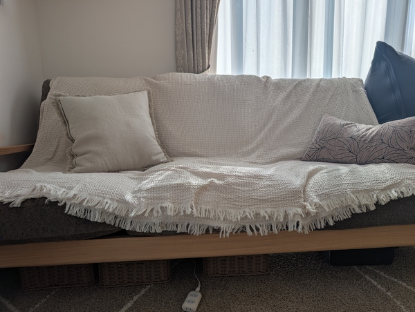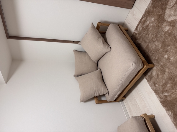 本来の使い方と異なるかもしれませんが、Lys2人がけソファーにピッタリでした!