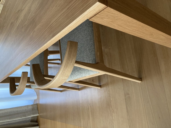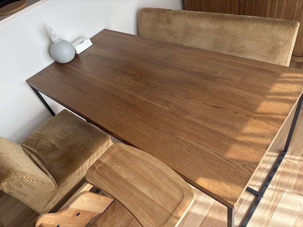 結果、色や高さ(机の下に収まる)などちょうどよく、お気に入りのダイニングテーブルセットになりました。