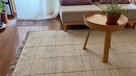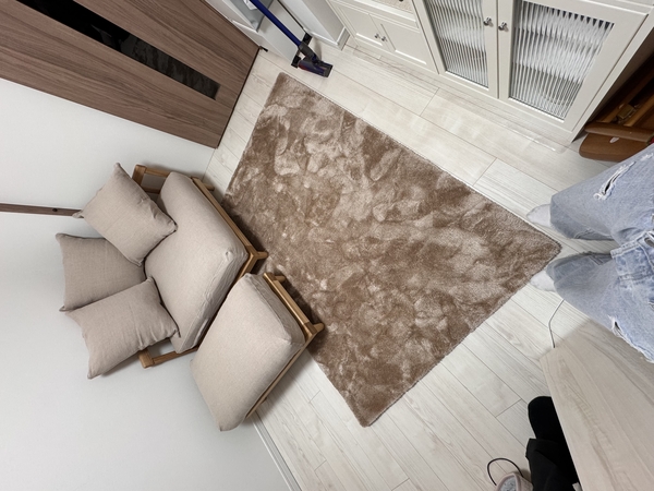 木製の家具で統一しているため、雰囲気はマッチして嬉しかったです。ウールの匂いは全く気になりませんでした。