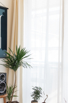 朝の目覚めも心地よいですし、午後日差しが一番つよい時間帯にリネンカーテンで閉じるとお部屋がとても美しいです。